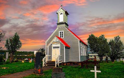 Kirkjen er en viktig del av bygda og er en vakker sightingspunkt for turister.